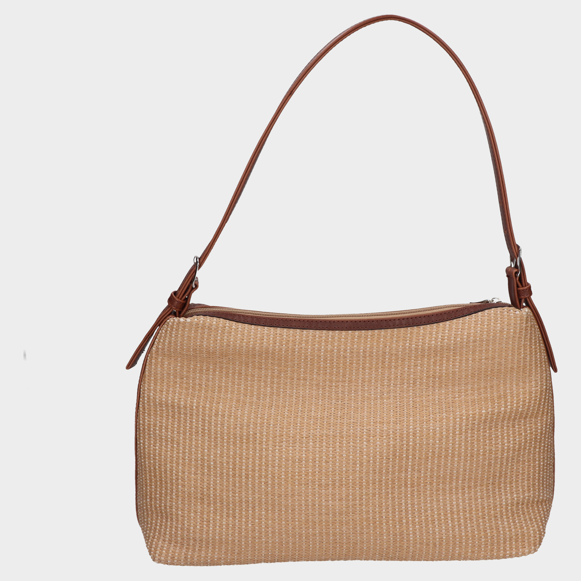 Satchel 28-Gp25004 Cml Bolso Tejido Beige Con Asa Café Y Detalle Artesanal Natural Y Sofisticado. Este Bolso En Tono Beige Con Textura Tejida Destaca Por Su Diseño Artesanal Y Estructura Funcional. La Asa En Tono Café Oscuro Aporta Contraste Y Elegancia, Mientras Que El Cierre Superior Y El Logo Discreto Al Frente Completan Un Accesorio Versátil Para El Día A Día. Ideal Para Looks Casuales, Fines De Semana O Como Complemento Relajado Con Estilo. Un Básico Con Encanto Que Se Adapta A Tu Ritmo. Descubre Más Modelos Que Combinan Diseño Orgánico Y Practicidad.