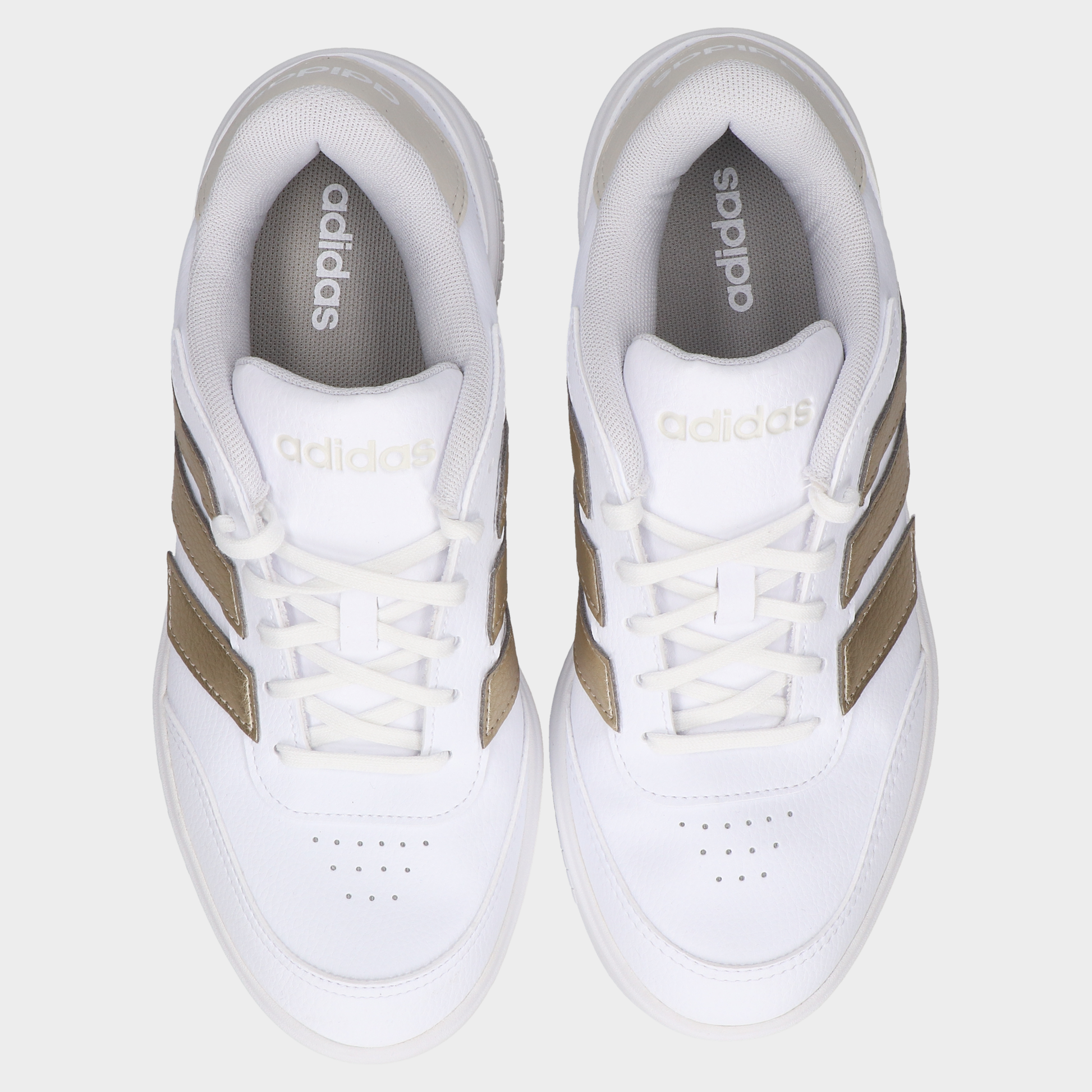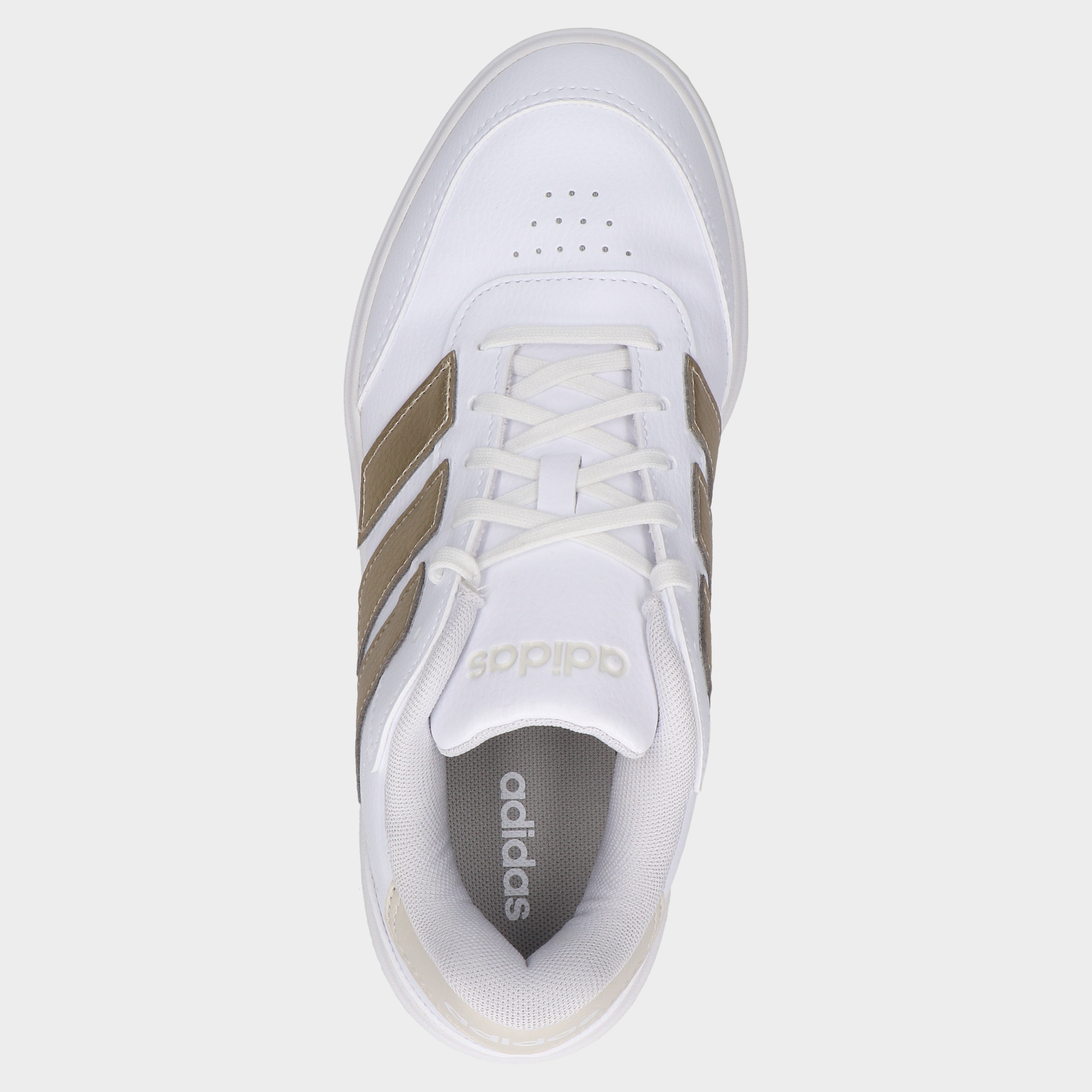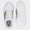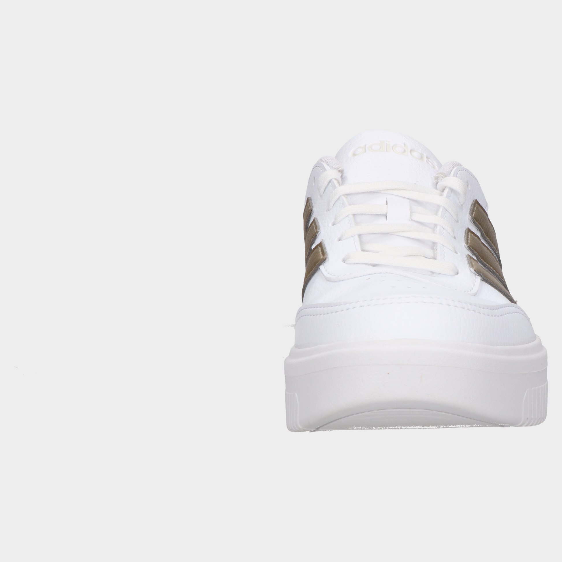Tenis Mujer 102-Adi-Ji2203 Bco/Oro. Dale Un Giro Elegante A Tu Look Con Los Tenis Adidas Courtblock Bold Para Mujer Una Mezcla Perfecta Entre Lo Clásico Y Lo Chic. Su Diseño Blanco Con Las Icónicas Franjas En Dorado Metálico Resalta Con Un Brillo Sutil Que Los Hace Destacar Sin Esfuerzo. Su Suela Robusta Ofrece Soporte Y Estabilidad Mientras Que El Interior Acolchado Garantiza Comodidad Durante Todo El Día. Ideales Para Outfits Relajados, Deportivos O Incluso Un Toque Casual Con Vestidos. Un Par Imprescindible Dentro Del Universo De Sneakers Blancos Con Detalles Metálicos Pensado Para Mujeres Que Buscan Estilo Sin Sacrificar Confort. Estilo Casual Courtblock Bold Corte y Forro Sintético Marca Adidas