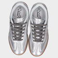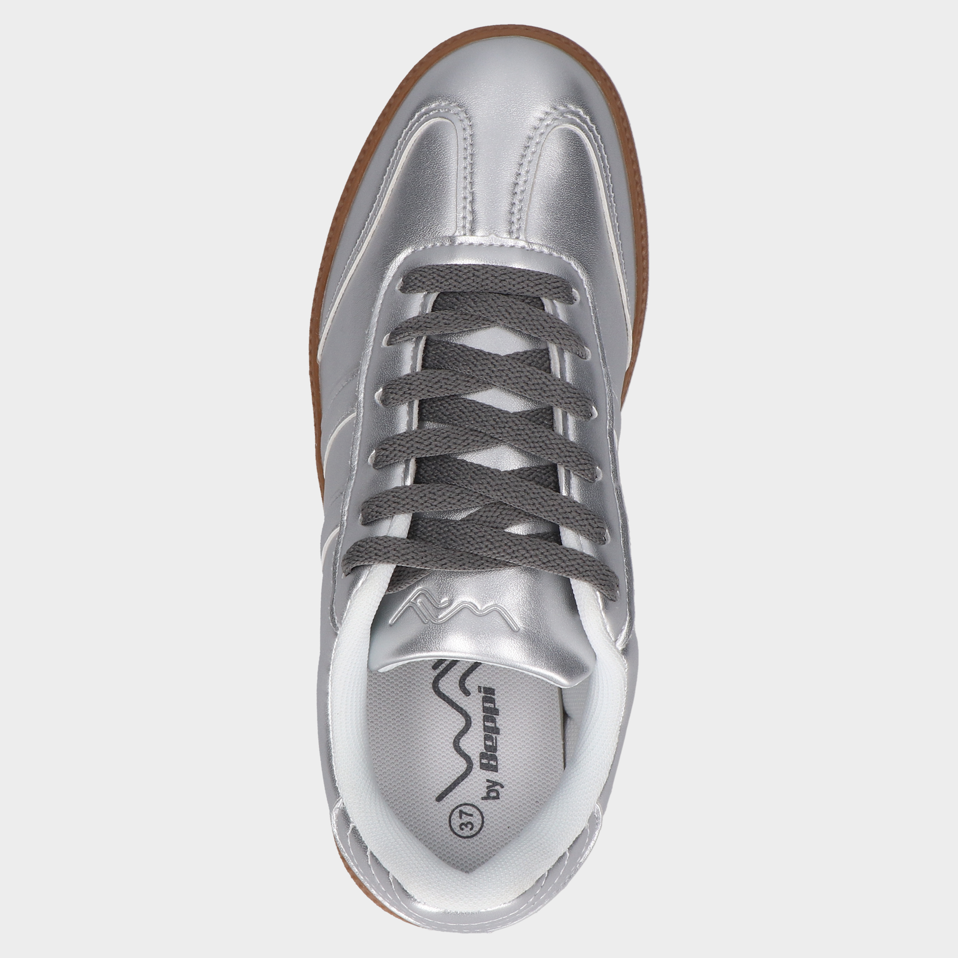 Tenis Casual Dama 102-Bp-D2214320 Plata ?? Tenis Plata Metálico Con Suela Café Y Diseño Clásico Diseño Retro Con Acabado Brillante. Estos Tenis En Tono Plata Metálico Combinan Gamuza Sintética, Costuras Visibles Y Suela Café Con Textura Rugosa Para Mayor Tracción. Las Agujetas Gris Oscuro, El Interior Blanco Y El Logo Grabado En Lengüeta Aportan Contraste Y Sofisticación. Ideales Para Conjuntos Urbanos, Atuendos Casuales O Como Pieza Protagonista En Looks Con Acento Futurista. Un Calzado Que Transmite Estilo, Presencia Y Comodidad. Descubre Más Modelos Que Celebran El Diseño Clásico Con Acabados Contemporáneos