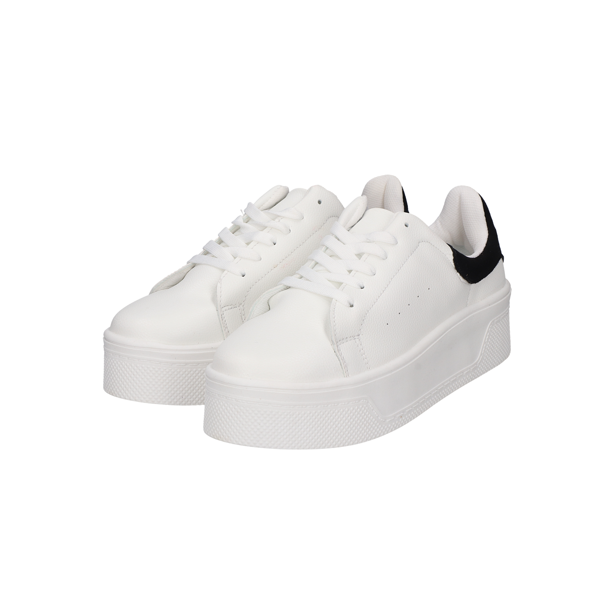 Tenis Dama 05-2015 Blanco/Negro Tenis Casual En Color Blanco, Con Un Toque En Negro, Con Agujetas Al Frente, Suela Ancha De Plataforma En Color Blanco Ideal Para Un Look Casual Marca Limonetta By Clinton