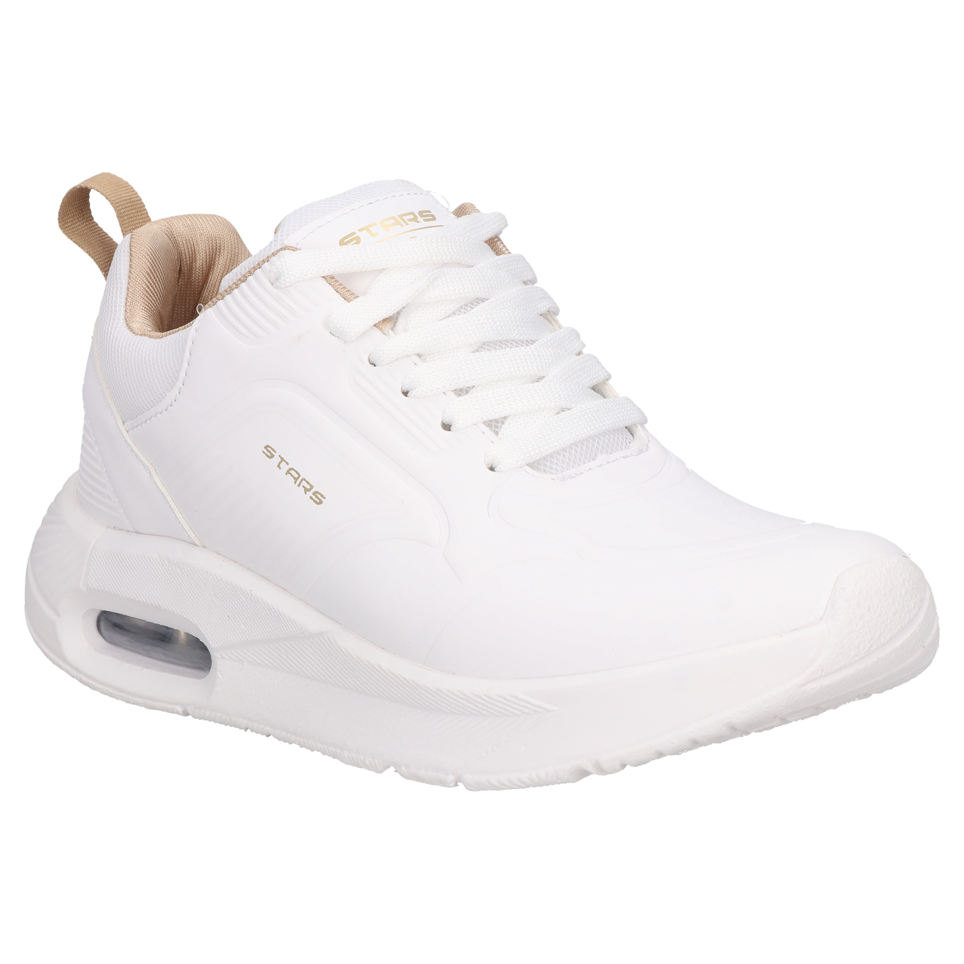 Tenis Dama 75-8807-1 Blanco Tenis En Color Blanco, Suela Ancha Antiderrapante Ideal Para Un Look Casual Marca Stars