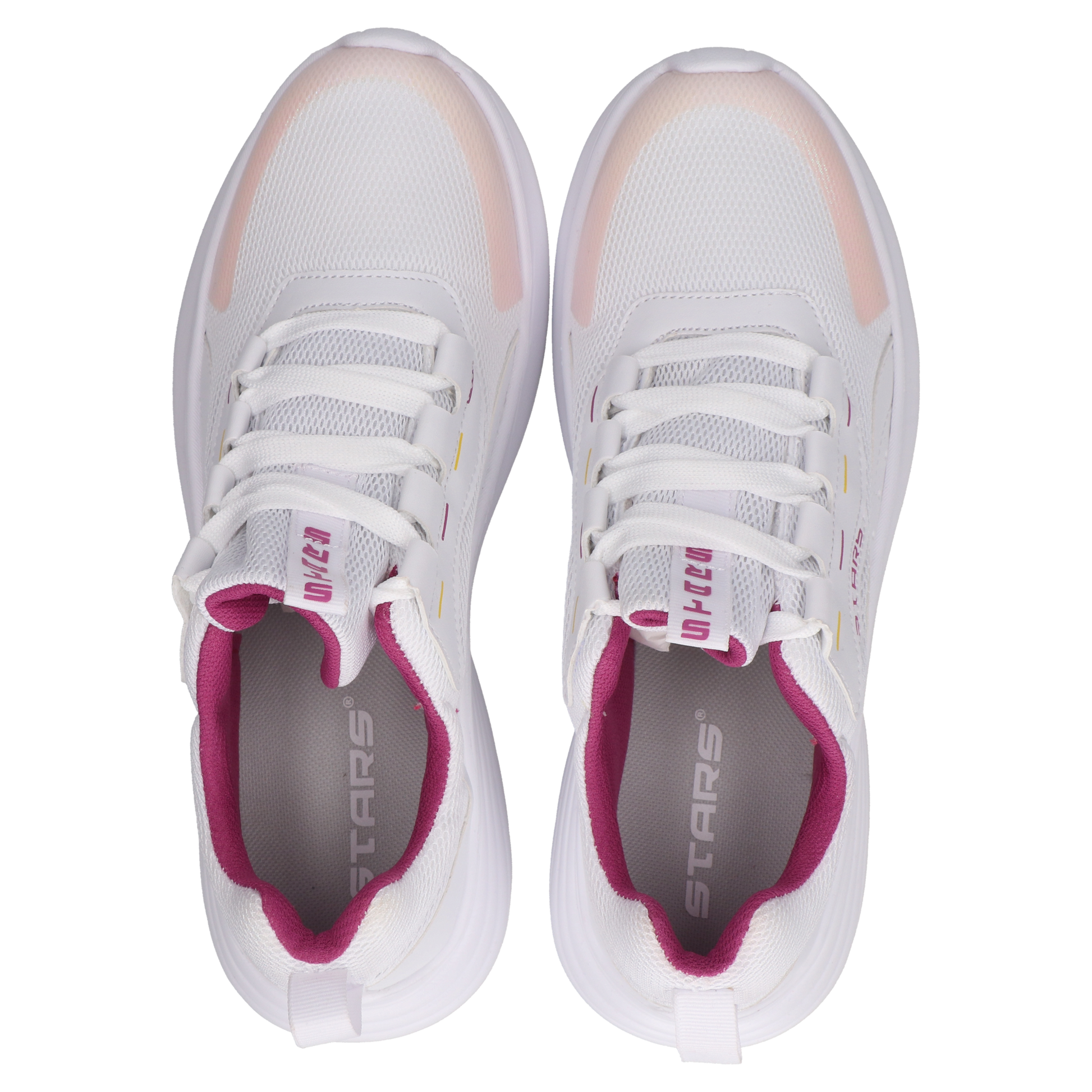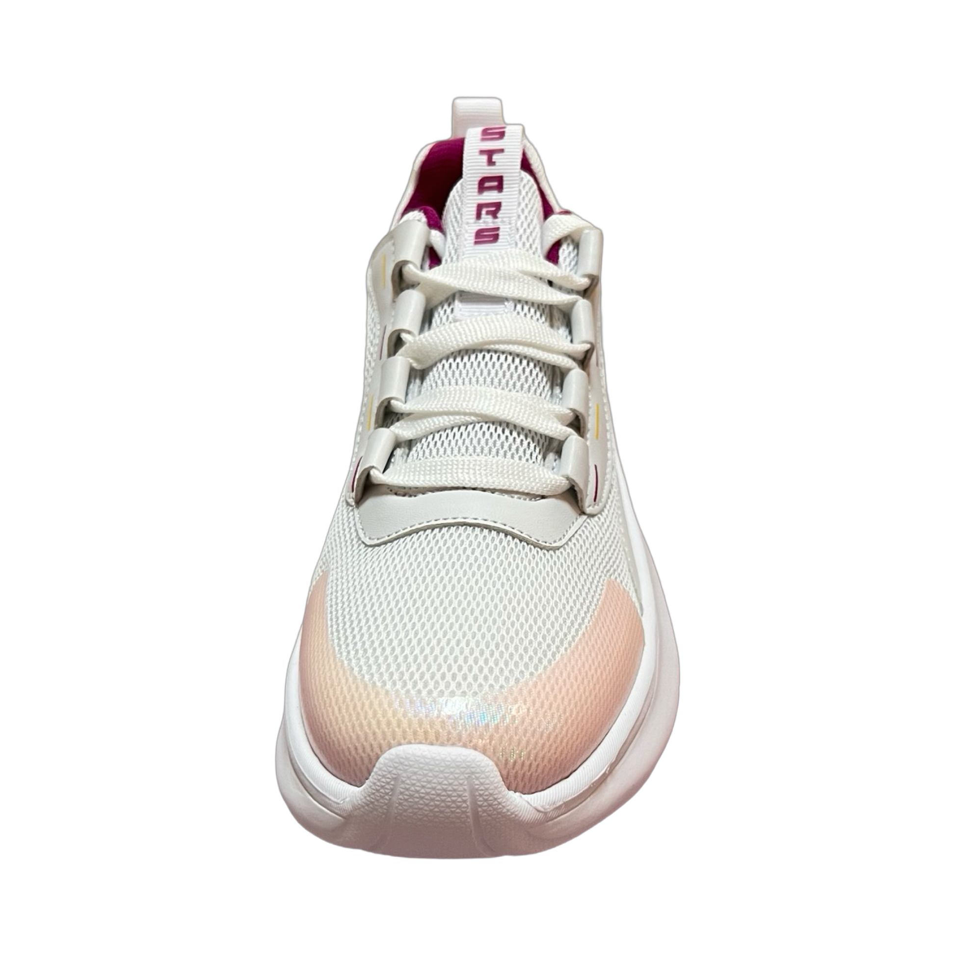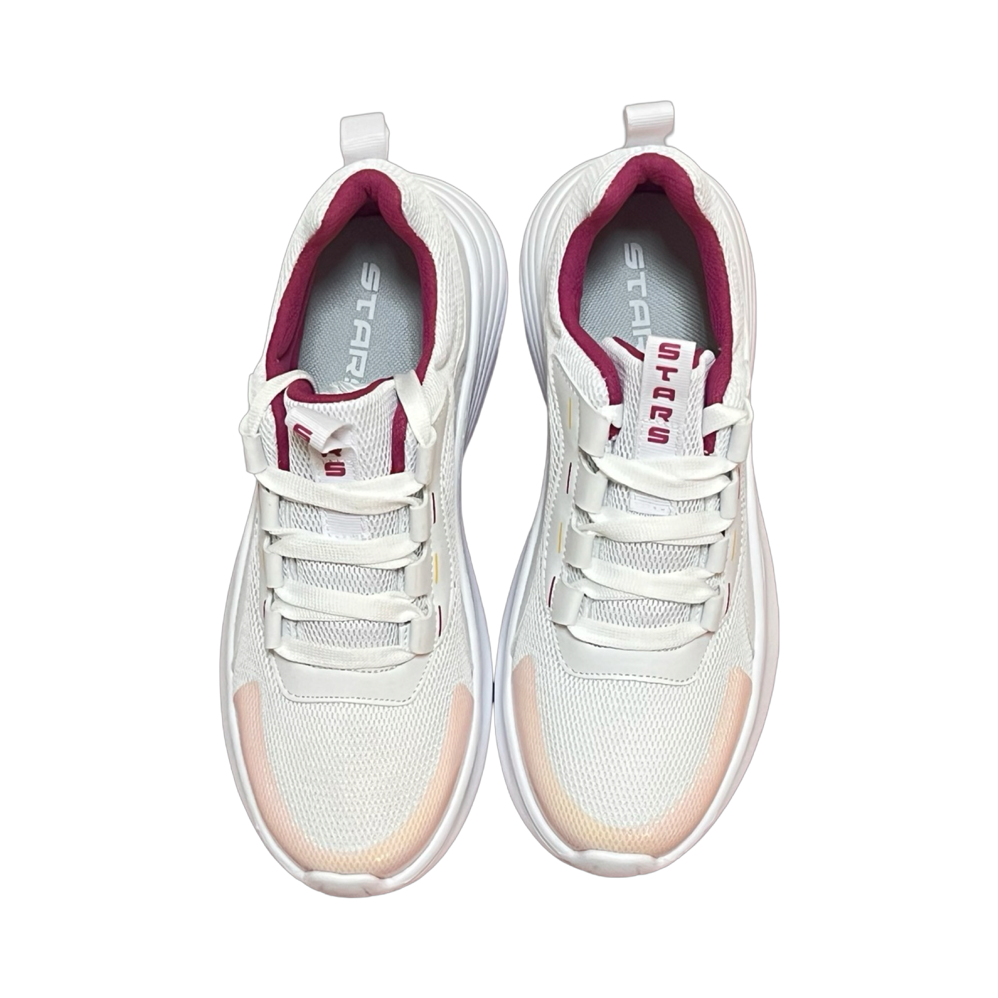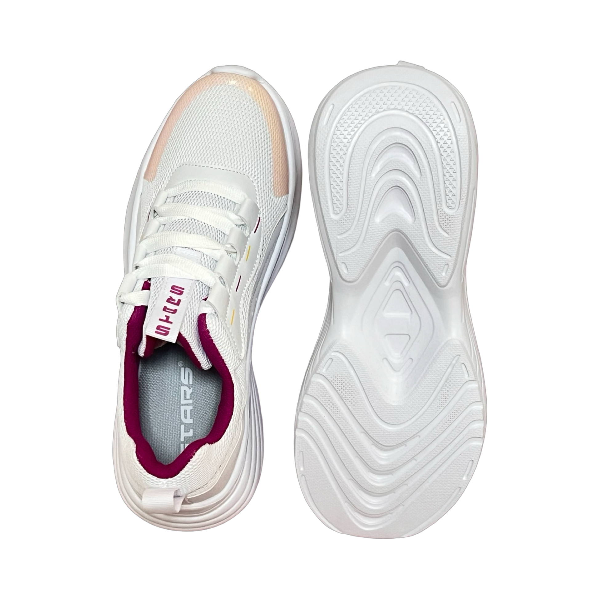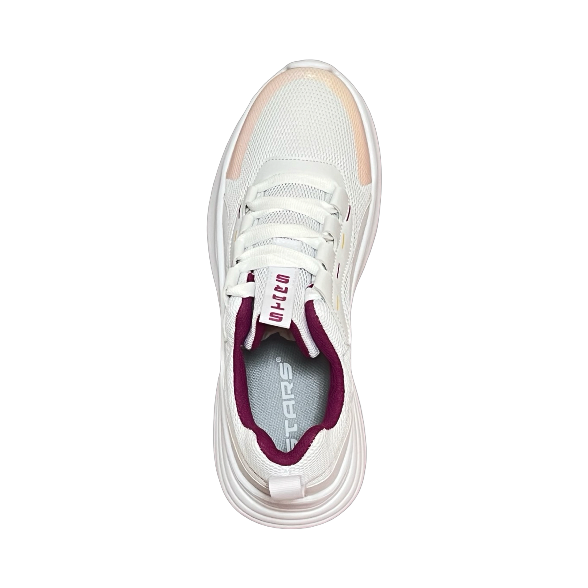 Tenis Dama 75-9945-1 Blanco Tenis Casual En Color Blanco Con Un Toque Rosado Al Frente, Con Plataforma Ancha En Color Blanco. Marca Stars