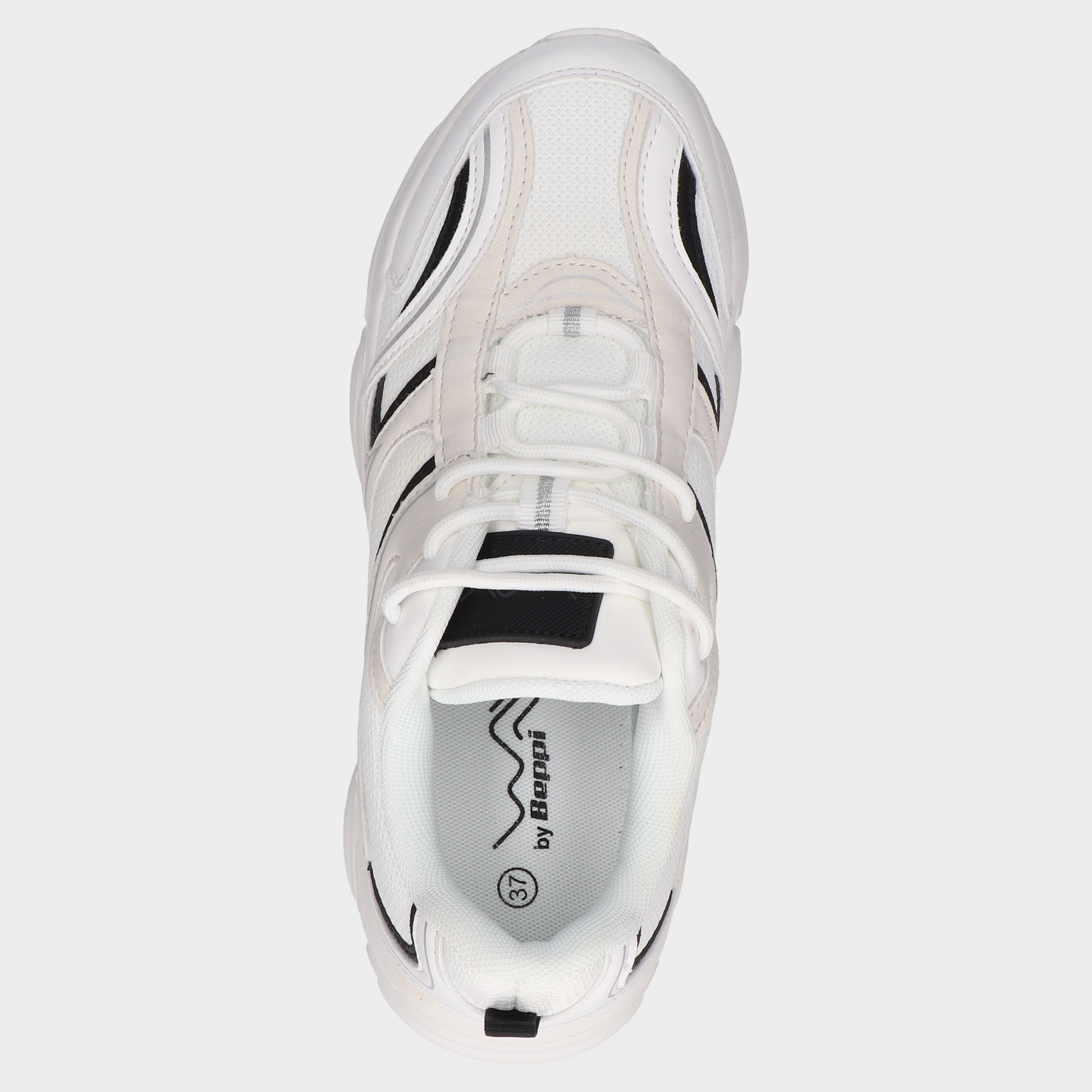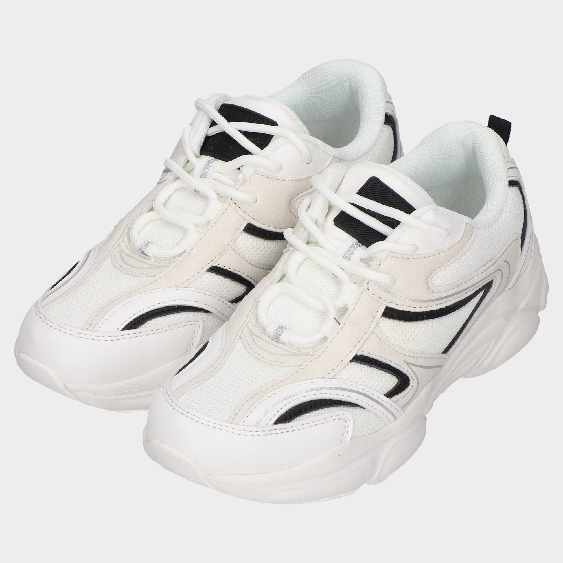 Tenis Deportivo Dama 102-Bp-D2217660 Blanco ? Tenis Blancos Con Detalles Negros Y Suela Chunky Diseño Deportivo Con Contraste Moderno. Estos Tenis Blancos Combinan Malla Transpirable, Materiales Sintéticos Y Acentos Negros En Costado, Lengüeta Y Talón. La Suela Gruesa Tipo Chunky Aporta Soporte Y Estilo, Mientras Que El Diseño Bicolor Los Convierte En Pieza Versátil Para Conjuntos Urbanos, Atuendos Monocromáticos O Looks Deportivos Con Carácter. Un Calzado Que Transmite Energía, Comodidad Y Presencia Visual. Descubre Más Modelos Que Celebran El Diseño Funcional Con Estética Contemporánea.
