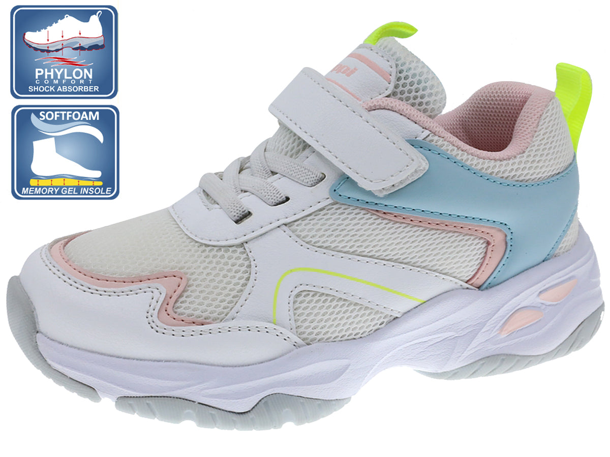 Tenis Infantil Niña 102-Bp-2199121 Bco/Mul Tenis Casual En Color Blanco, Detalles En Azul Pastel Y Rosa, Con Cintas Y Velcro Para Un Mejor Ajuste . Marca Beppi