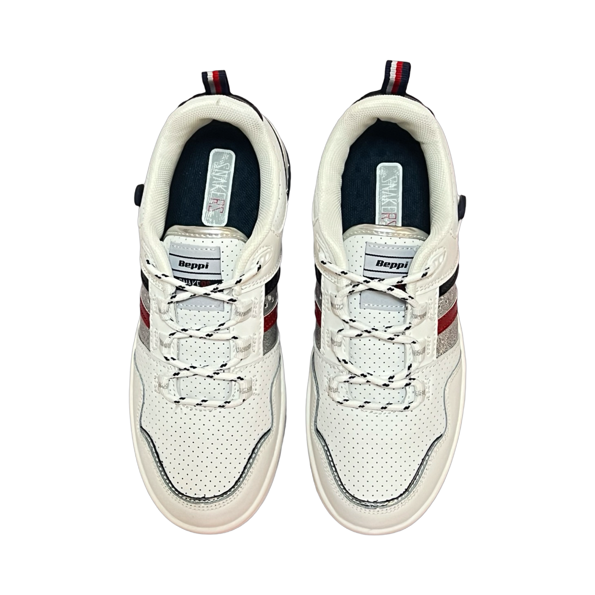 Tenis Infantil Niño 102-Bp-2191370 Bco/Mno Tenis Casual En Color Blanco Con Detalles En Azul Y Rojo, Suela Antiderrapante. Ideal Para Un Look Casual. Marca Beppi.