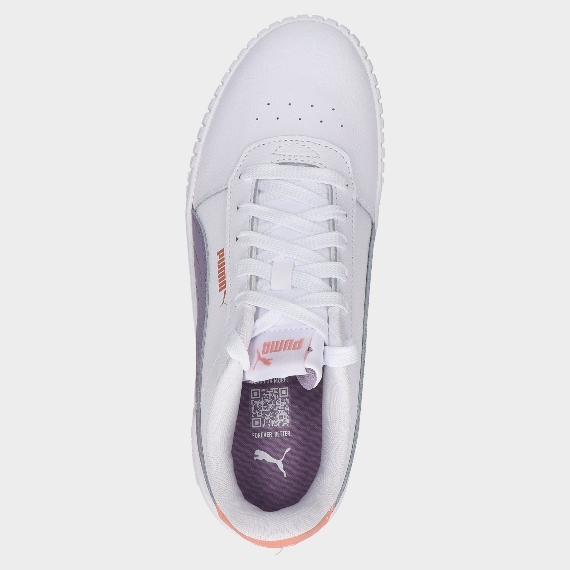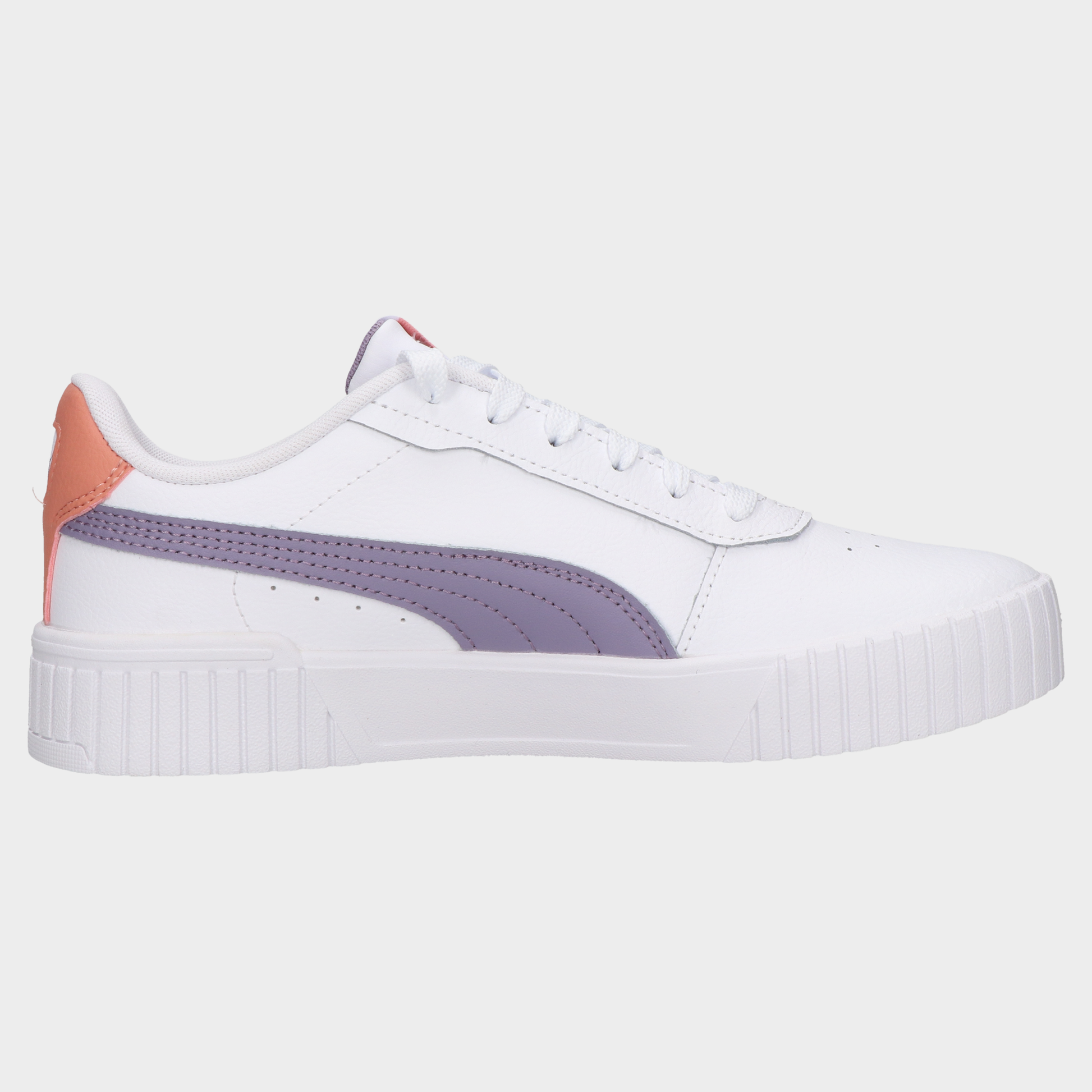 Tenis Puma Carina 2.0 Juvenil 102-Pum-38618520 Bco/Lil. Una Fusión Entre Estilo Retro Y Frescura Contemporánea. Estos Tenis Puma Carina 2.0 de Estilo Juvenil Destacan Por Su Silueta Icónica En Color Blanco Realzada Con Detalles En Lila Y Acentos Coral Que Le Dan Un Toque Vibrante Y Femenino. Su Suela Robusta Y Texturizada Ofrece Mayor Presencia En Cada Paso Mientras Que El Diseño Perforado En La Parte Frontal Aporta Ventilación Y Estilo. Ideales Para Crear Looks Modernos Y Relajados Sin Renunciar Al Confort. Una Excelente Elección De Tenis Casuales Con Plataforma Para Quienes Buscan Marcar Diferencia Con Un Look Auténtico. Estilo Casual Corte y Forro Sintético Marca Puma