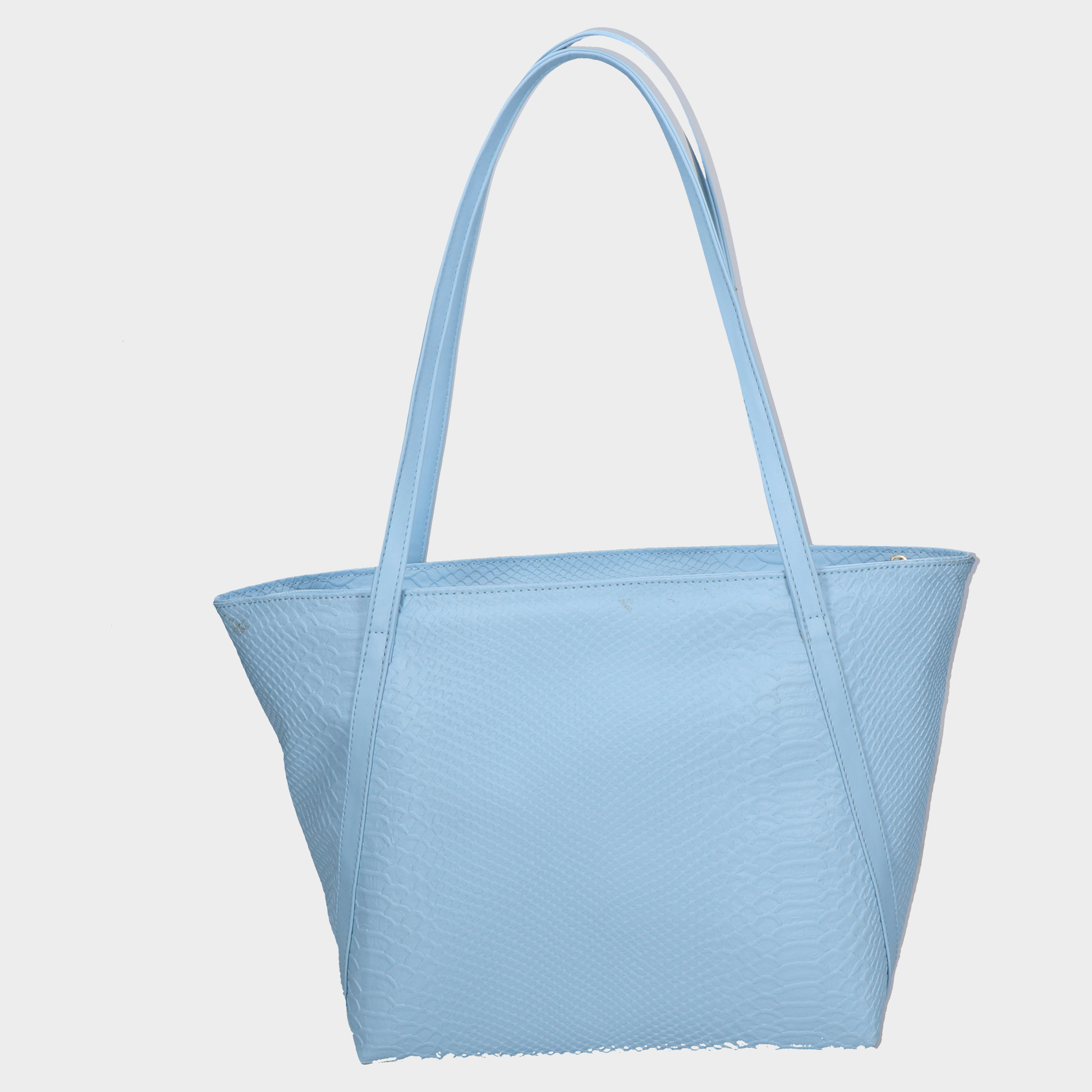 Tote 28-Gp25010 Cie Bolso Azul Texturizado Con Asa Doble Y Diseño Trapezoidal Estilo Moderno Con Textura Distintiva. Este Bolso En Tono Azul Claro Destaca Por Su Silueta Trapezoidal Y Superficie Texturizada Tipo Reptil, Ideal Para Quienes Buscan Un Accesorio Elegante Y Funcional. Las Asas Largas Permiten Llevarlo Cómodamente Al Hombro, Mientras Que El Logo Metálico Discreto Al Frente Aporta Un Toque Sofisticado. Perfecto Para Oficina, Salidas Casuales O Como Complemento Chic En El Día A Día. Un Básico Refinado Que Eleva Tu Look Con Personalidad. Descubre Más Modelos Que Combinan Diseño Estructurado Y Estética Contemporánea.