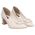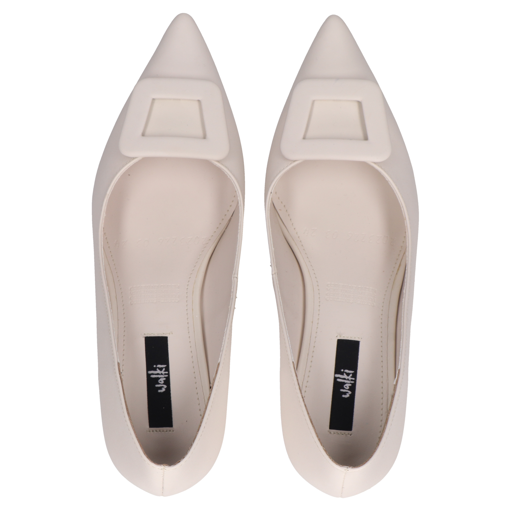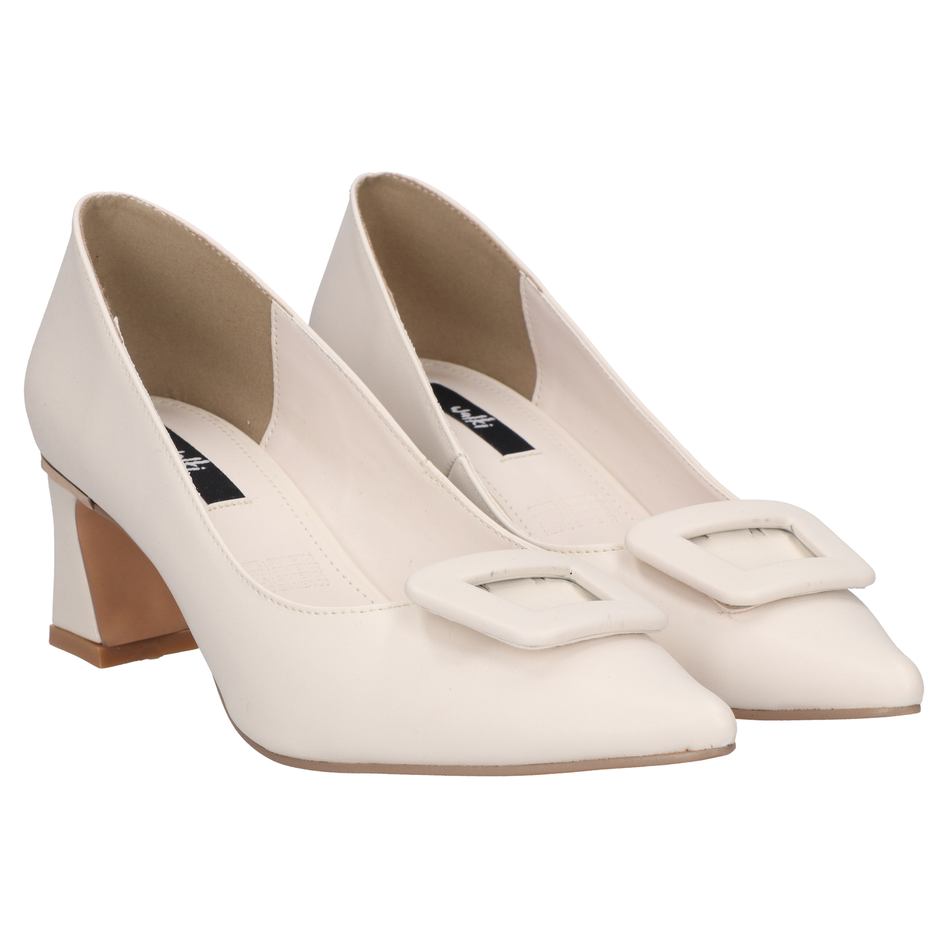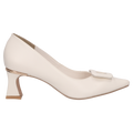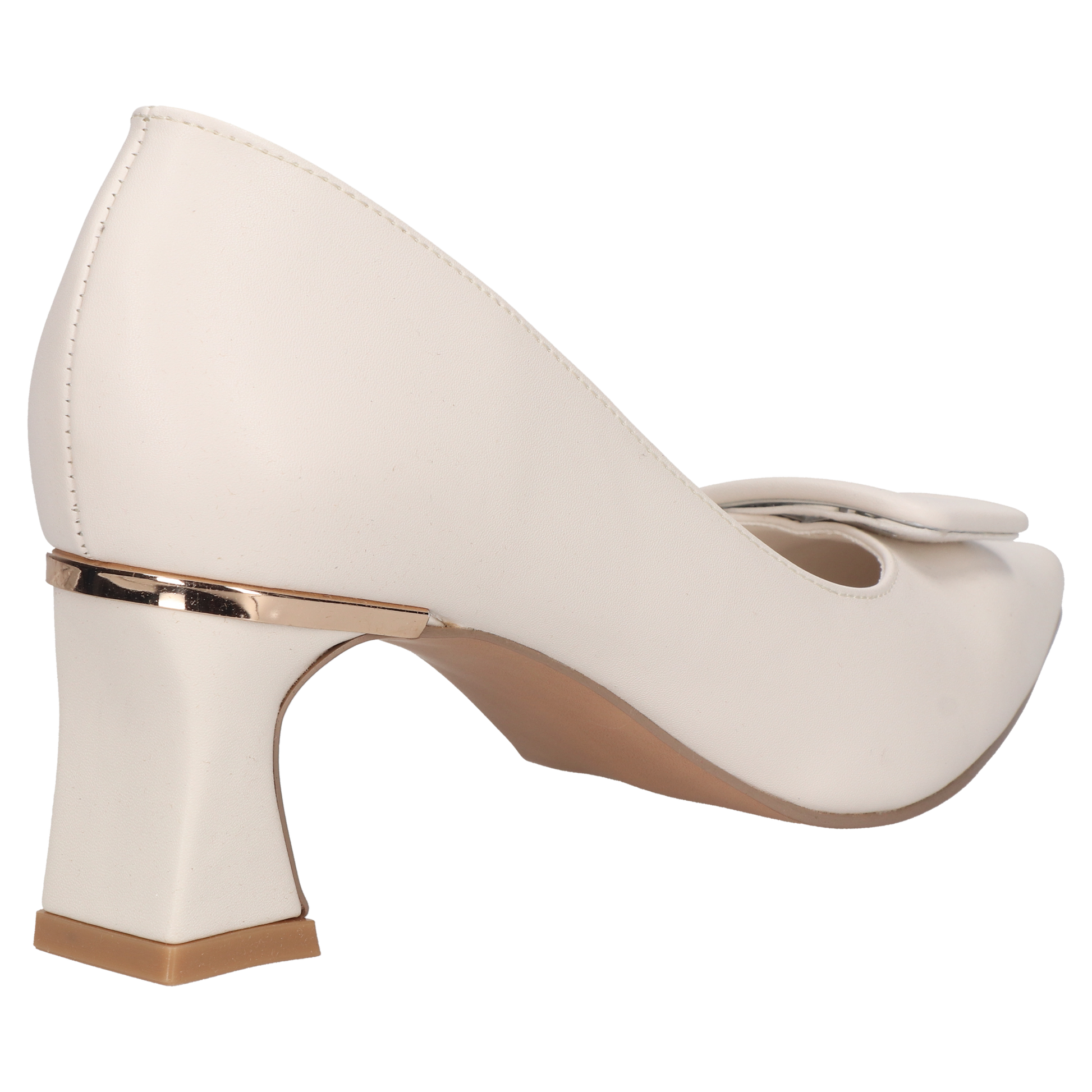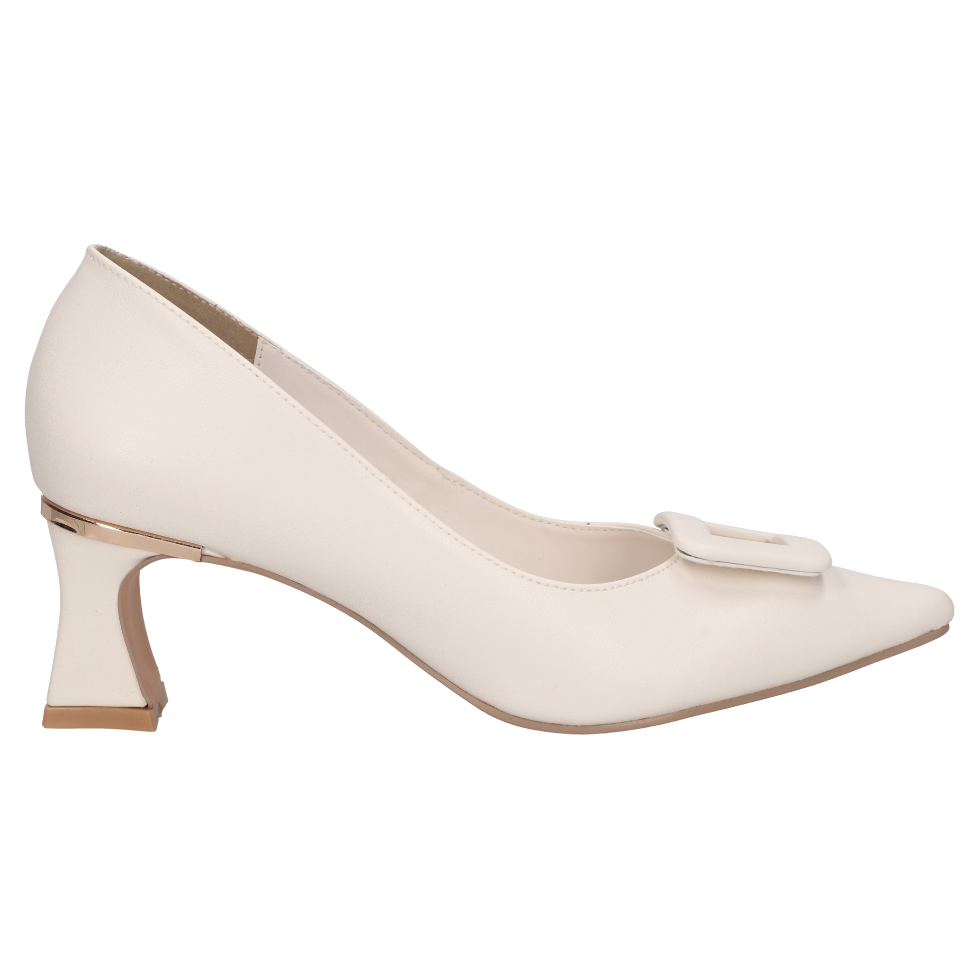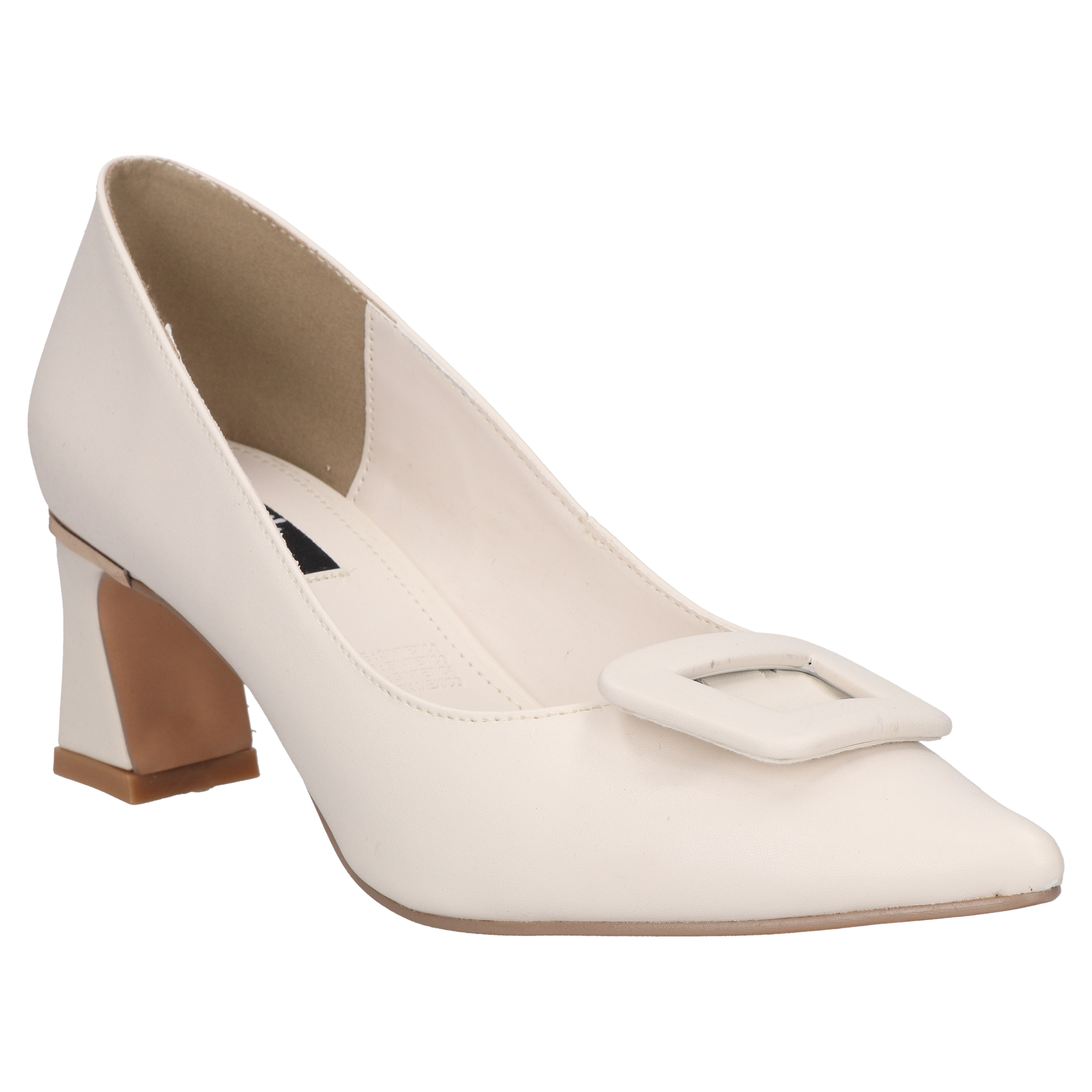 Zapatilla Dama 108-W2023-226 Late Hermosos Tacones En Color Crema, Con Tacón Bajo, Hebilla Al Frente Como Adorno Ideal Para Un Evento Formal Durante El Día Marca Walki