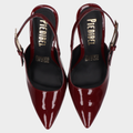 Zapatilla Dama 111-5700Chavn Vino ?? Tacones Slingback Piedire Burdeos Con Tacón Geométrico Dorado Elegancia Con Diseño Artístico. Estos Tacones Slingback En Tono Burdeos Brillante Combinan Punta Afilada, Correa Ajustable Con Hebilla Dorada Y Tacón Medio Con Acabado Metálico Y Forma Geométrica. El Interior Negro Con Branding Dorado Aporta Contraste Sofisticado, Ideal Para Eventos Formales, Atuendos De Oficina O Como Pieza Protagonista En Looks De Temporada. Un Calzado Que Transmite Estilo, Originalidad Y Presencia. Descubre Más Modelos Que Celebran La Moda Con Carácter Visual Y Diseño Estructurado.