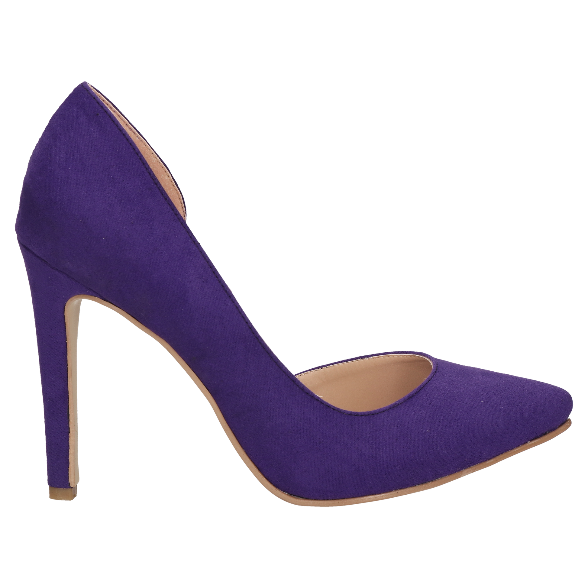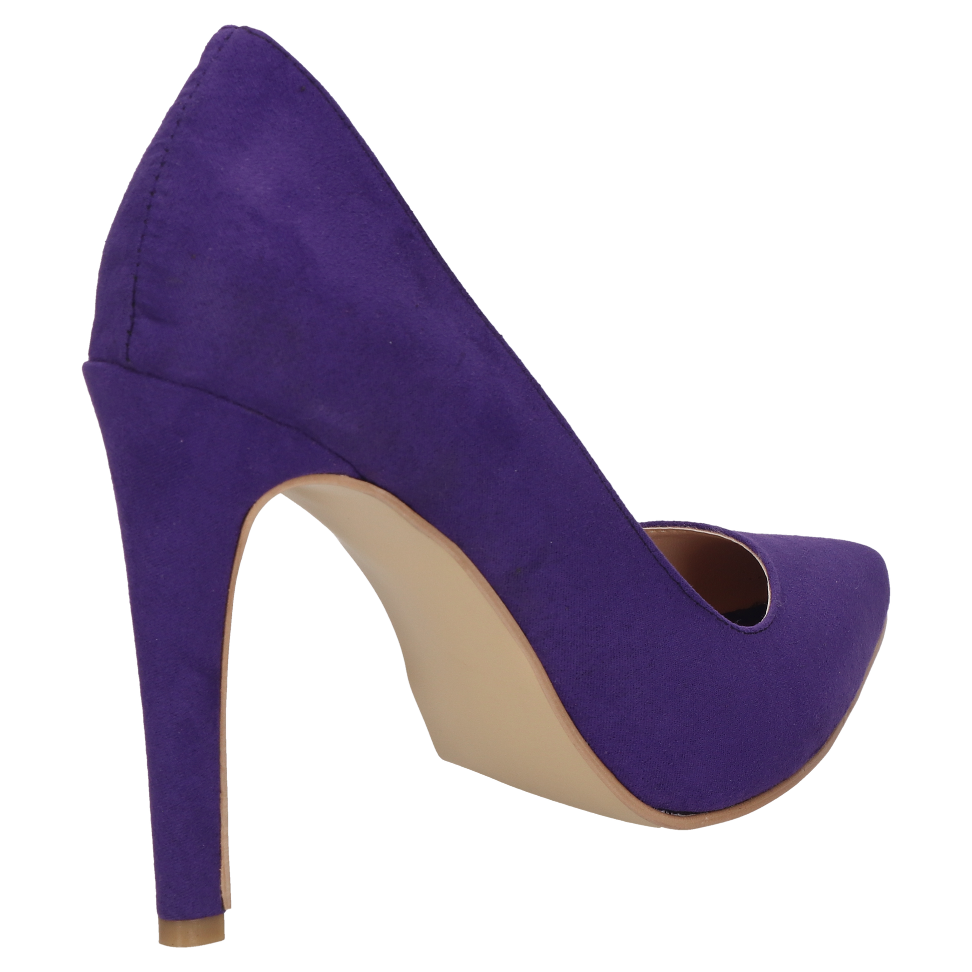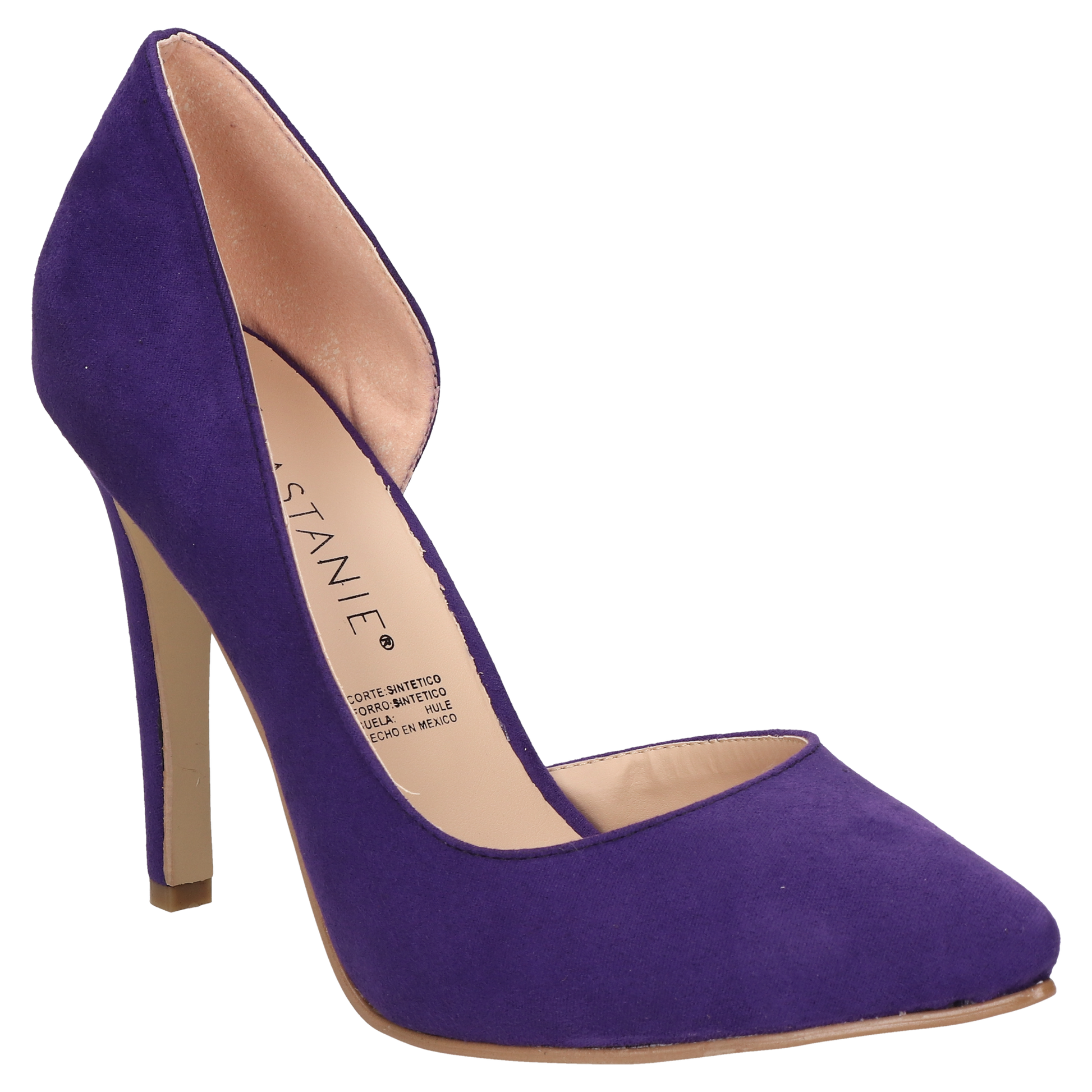 Zapatilla Dama 15-M13716 Morado Hermosos Tacones En Color Morado Tipo Ante, Tacón Alto Delgado Con Diseño En Punta Ideal Para Lucir En Un Evento Formal Y Casual A La Moda Marca Castanie