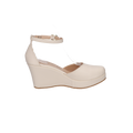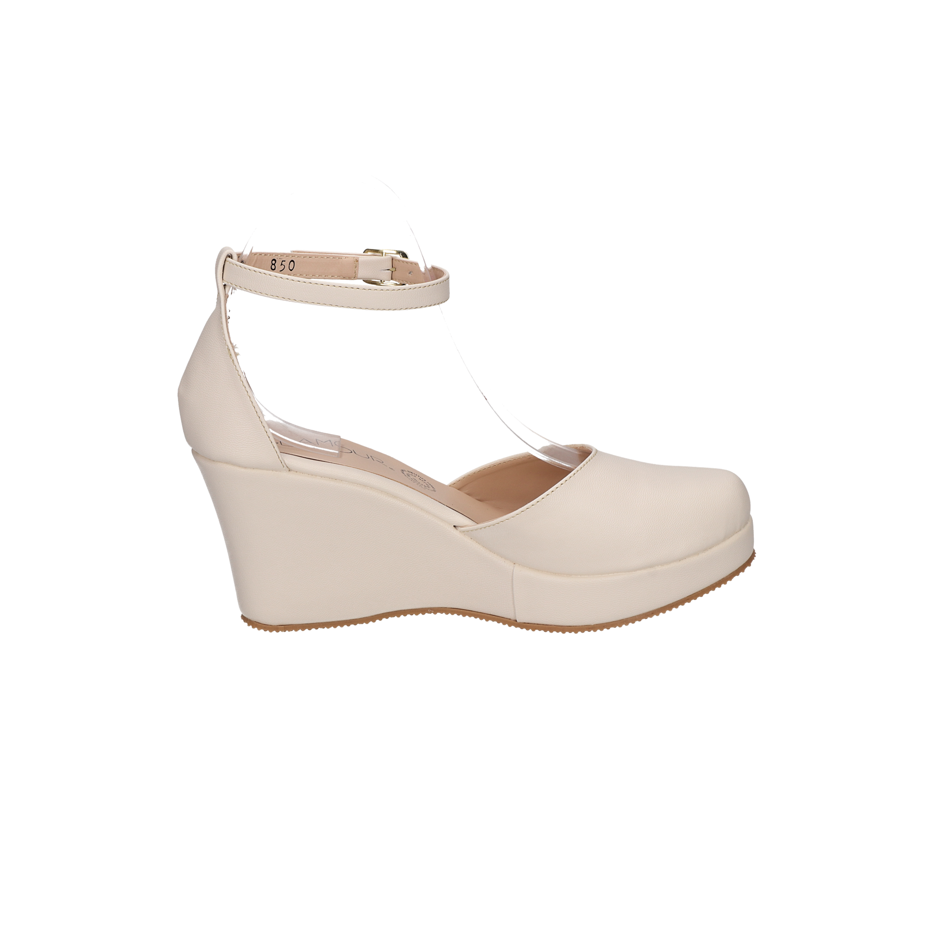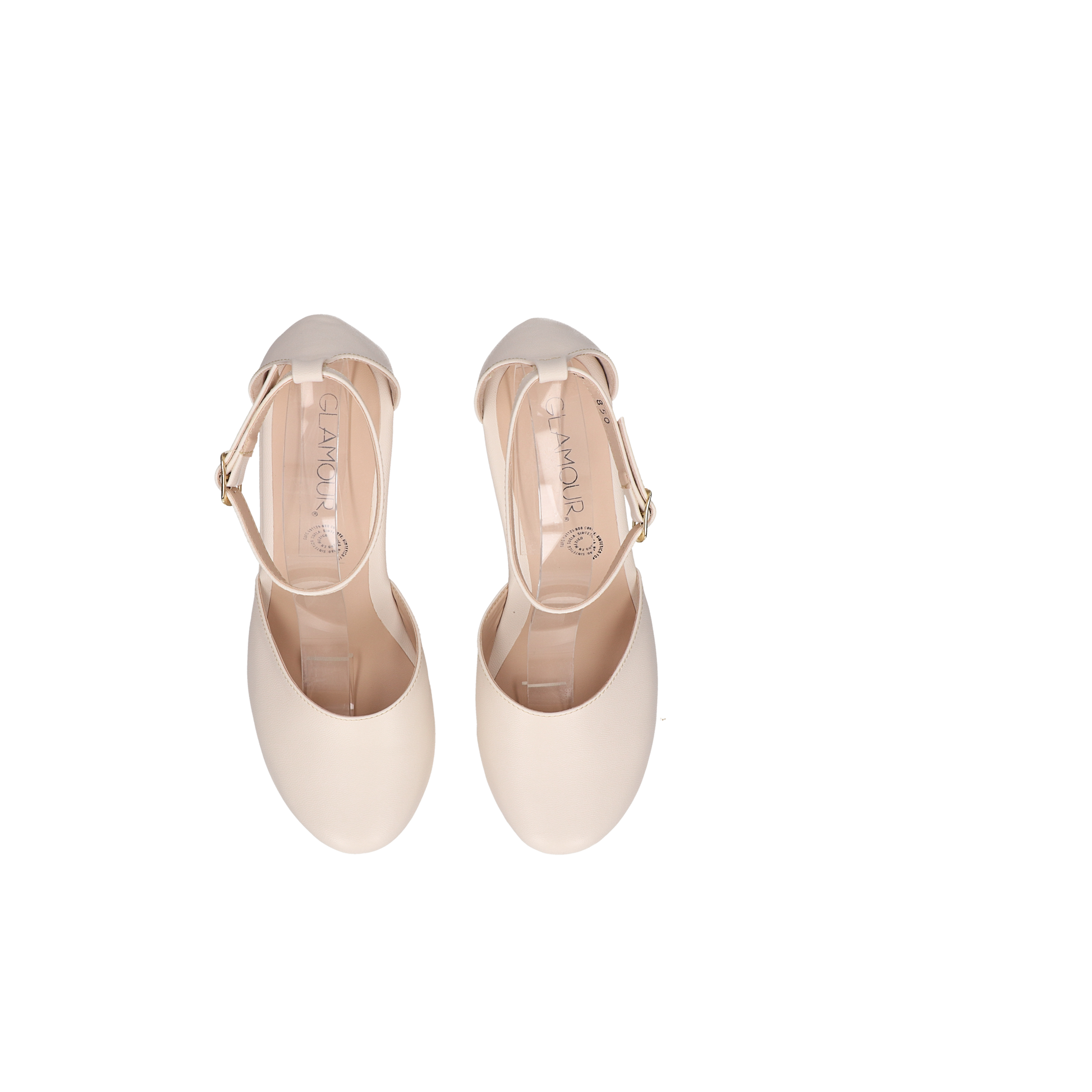 Zapatilla Dama 75-850 Ice Hermosas Zapatillas En Color Crema, Con Tacón Alto Y Suela Corrida, Hebilla Al Tobillo Ideal Para Un Evento Formal Marca Glamour