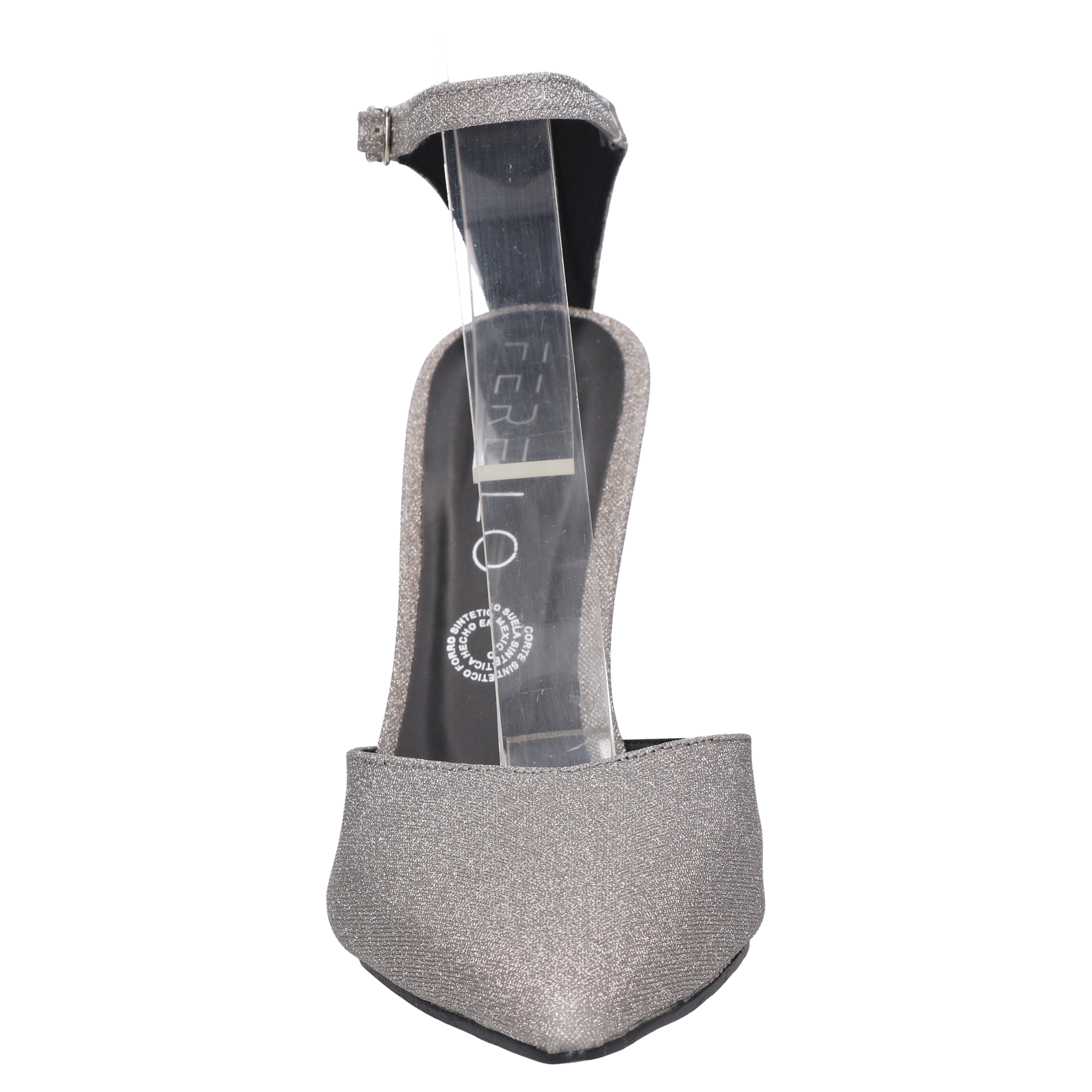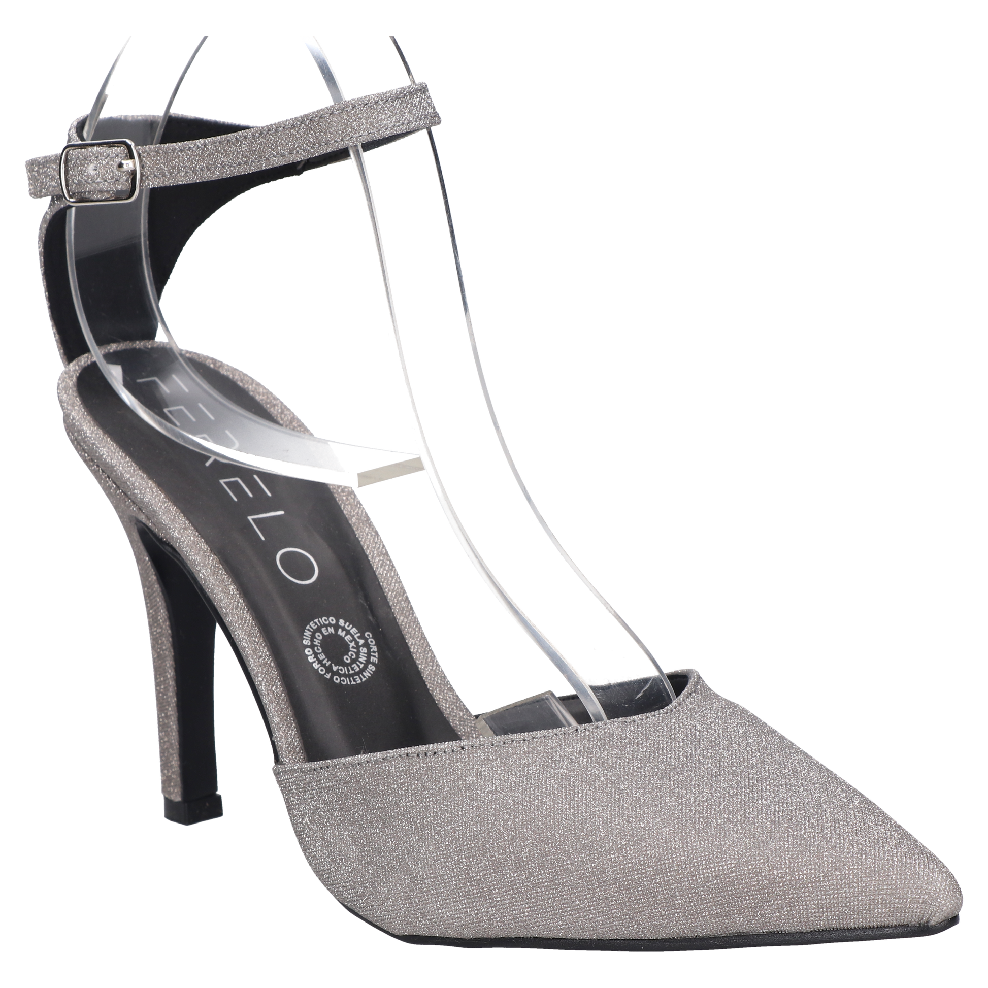 Zapatilla Dama 76-6028-Pe Inox Lindos Tacones En Color Charol Inox, Con Tacón Alto, Ajuste Con Hebilla Al Tobillo. Marca Ferelo