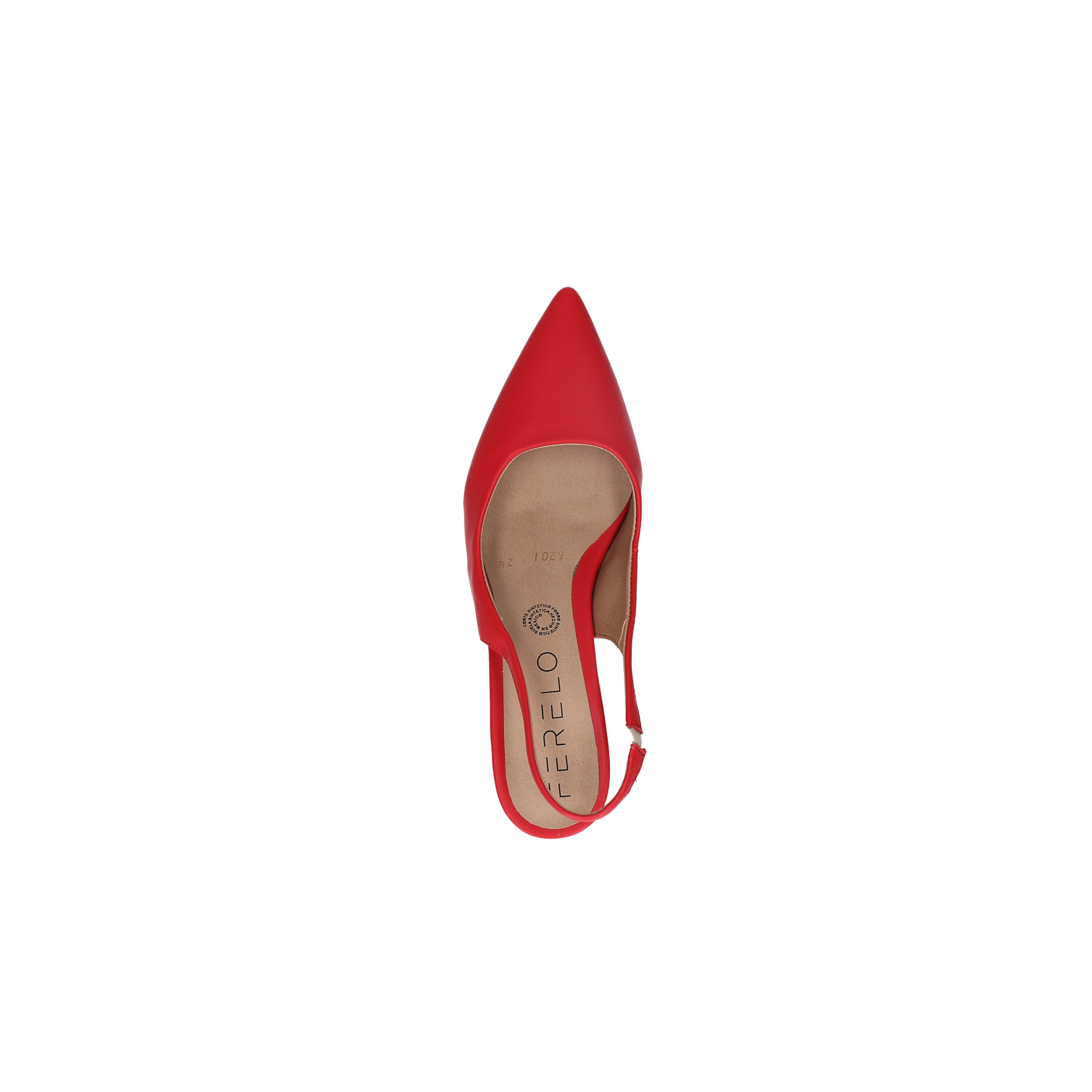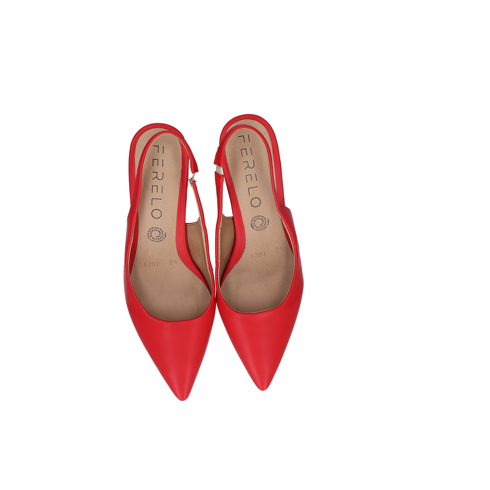Zapatilla Dama 76-6201-Na Ferrari Hermosos Tacones En Punta Color Rojo, Tacón Bajo, Con Ajuste En Resorte Al Tobillo Y Talón Al Descubierto Ideal Para Un Evento Formal Marca Ferelo